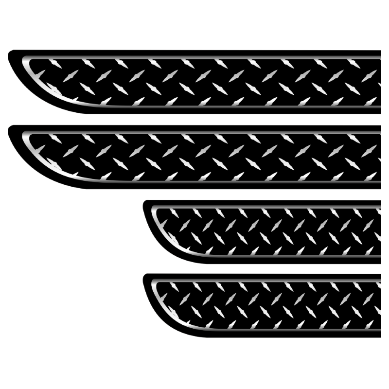 Set universal de protecții praguri auto „Diamond Duo” cu design modern în două straturi – negru și crom. Ușor de montat, oferă protecție și stil pentru orice model de mașină.